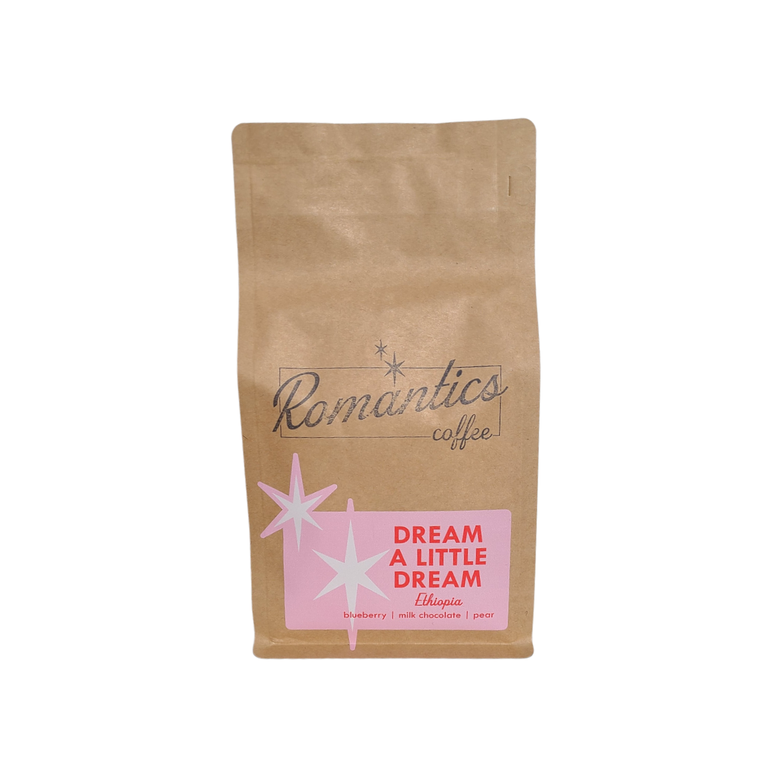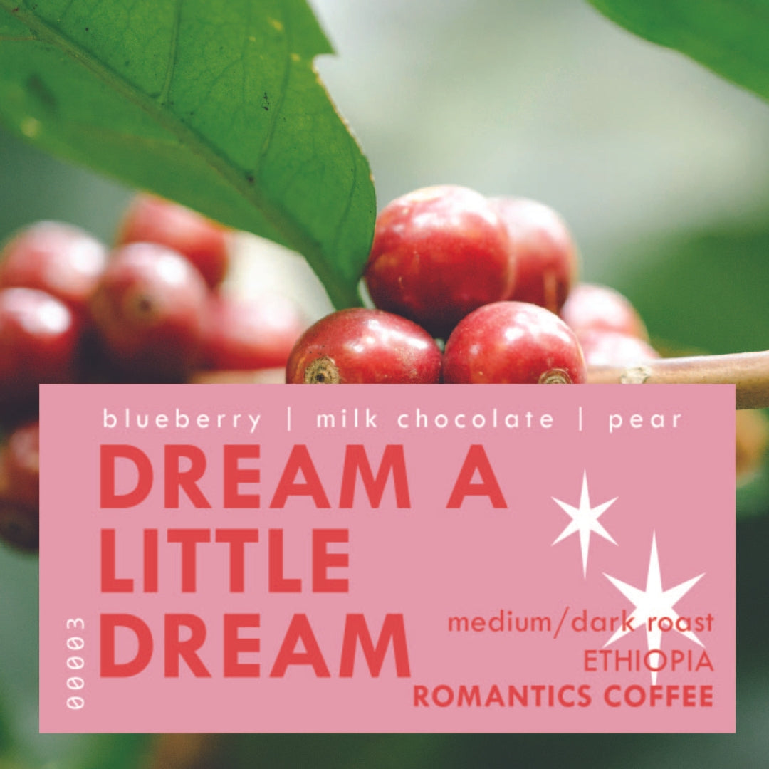 From the birthplace of coffee, naturally processed, from Ethiopia. Dream a Little Dream is a must-try and a new favorite of ours. Notes of blueberry, milk chocolate and pear. Enjoy as a pour over, drip or an extra special single origin espresso.